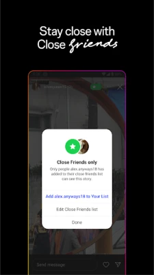 Share daily updates that vanish after 24 hours or pin them as highlights on your profile. Add stickers, polls, GIFs, and more for interaction.